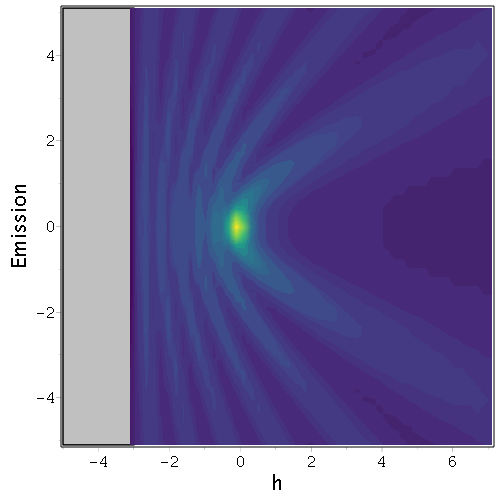 plotter  procexpr local p1,p2; p1  plots:-densityplotexpr1100,_rest; p2  plottools:-polygonexpr2, color=silver; return plots:-displayp1,p2; end: mirror  5, 5.1, h, 5.1, h, 5.1, 5, 5.1: emission_and_mirror  emission,mirror:plots:-animateplotter,emission_and_mirror, x= h..7, y= 5.. 5,style=patchnogrid,colorscheme=Viridis, axes=boxed, labels=h,Emission, labeldirections=horizontal,vertical, labelfont=Helvetica,16, h=3..0.0000001,frames=80,paraminfo=false;
