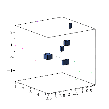 If n or more points are found within a cube, whose size is defined by length, then they are replaced by the tightest fitting box possible. If n^2 or more points are found within the same cube, then the box will be emphasized with thicker borders.