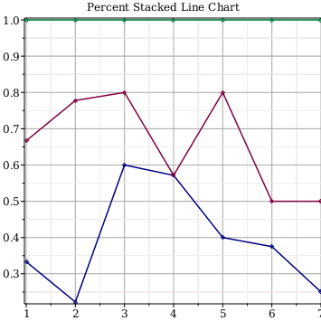 By default, individual data sets are displayed as separate lines in the same coordinate system. A stacked line chart shows related data groups, one on top of the other. A percent line chart is similar to a stacked line chart, except that it is rescaled to a height of 1 while preserving proportionality. If scale is set to relative and format is set to stacked then a percent stacked plot is generated.