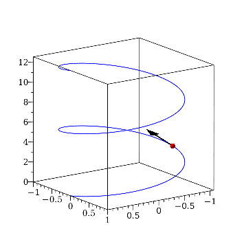 The option 'pvdiff'=[param$k] plots the rooted Vector corresponding to the kth derivative of the components of the position Vector along the curve. The number of vectors displayed can be controlled with the option 'vectornum'=posint. The evaluation point(s) on the curve can be provided with the option 'points'.