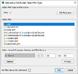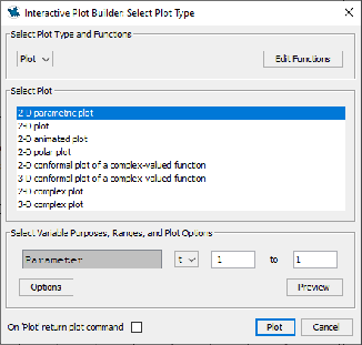 The Interactive Plot Builder for the sequence xt,yt will default to the graph of two separate curves. If the Plot Builder is launched on a sequence instead of a list, select "2-D parametric plot" to obtain the graph of the parametrically-defined curve. See Figure A-9.3(d).