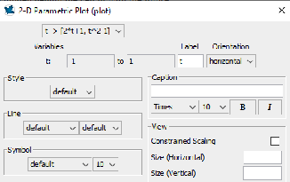 The astute reader will note that the axes are labeled with x and y, but this is not possible with the Interactive Plot Builder. Figure A-9.3(c) shows that there is no provision for labeling axes when the Interactive Plot Builder is used to graph a parametrically defined curve.