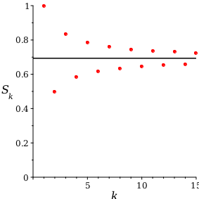 Use Maple to show that the sequence of partial sums converges to ln2.