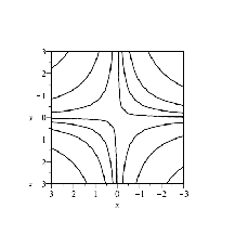 plots:-implicitplot3dx⁢y+z⁢coshz−1=1, x=−3..3,y=−3..3,z=−3..3,style=contour,orientation=90,0,0,labels=x,y,,color=black,grid=20,20,20