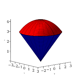 Use an iterated triple integral to obtain the volume of R, the region in the upper half-plane that is above the cone z2=x2+y2 but below the sphere x2+y2+z2=18. (Use cylindrical coordinates.)