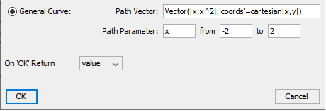 Context Panel: Student Vector Calculus≻Line Integral Complete the Line Integral Domain dialog as per Figure 9.7.4(a).
