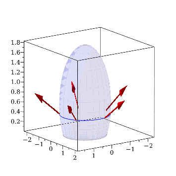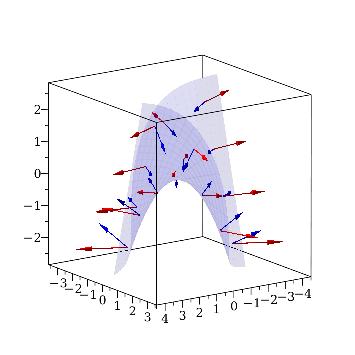 If a vector field is provided with the option `vectorfield`, the additional option 'normalfield'= truefalse controls whether or not a normal field is evaluated at equally spaced points on the surface. The resulting rooted vectors are displayed. If no vector field is provided, an error is raised. The default value is false.