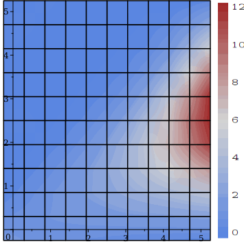 The exact value of the color scaling range used for the plot is displayed if infolevel[densityplot] is set to 1 or greater. The minimum and maximum function values for the density plot are displayed if infolevel[densityplot] is set to 2 or greater.
