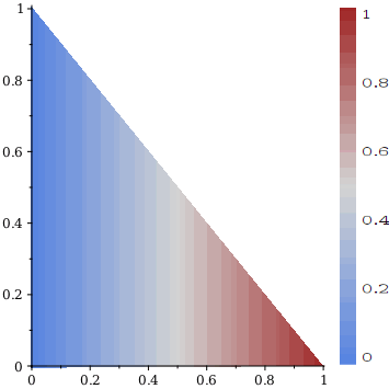 densityplot⁡x,y↦x,0..1,0..x↦1−x
