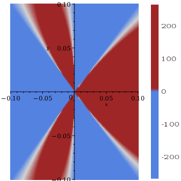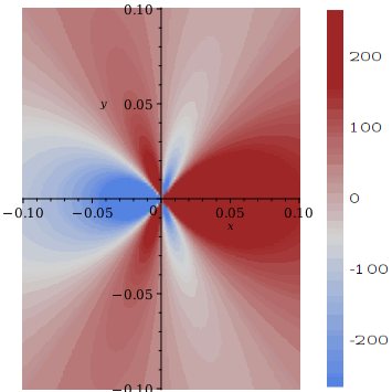 densityplot⁡x⁢x2−y2x2+y22,x=−0.1..0.1,y=−0.1..0.1,grid=128,128,contrast=0