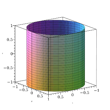 cylinderplot⁡1,θ=0..2⁢π,z=−1..1