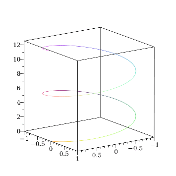 spacecurve⁡cos⁡t,sin⁡t,t,t=0..4⁢π