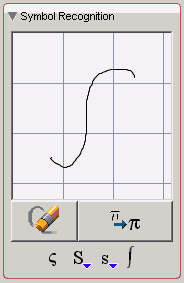 With over 20 palettes and 800 symbols, sometimes finding the right symbol to insert can be time consuming. The Symbol Recognition palette provides an efficient way to find and insert the right symbol. You draw the symbol with your mouse and then Maple matches your input against symbols available in the system.