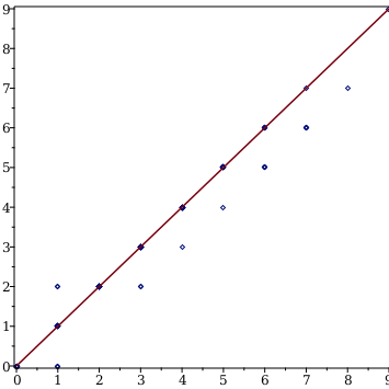 ProbabilityPlot(Sample(RandomVariable(Poisson(3)), 200), Poisson(3));