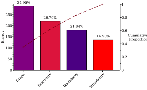 Statistics:-ParetoChart DFEnergy, columngraphoptions=color=sortDF,Energy,`>`Color, labels=,Energy;