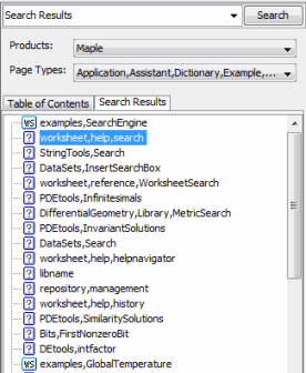 You can filter search results by product using the Product list (if you have more than one Maplesoft product installed) and also by page type, using the Page Types list.