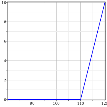 The parameter payoff is the payoff function for the option. It can be either an algebraic expression or a procedure. A procedure defining a payoff function must accept one parameter (the value of the underlying) and return the corresponding payoff. This procedure will be called with floating-point arguments only and must return floating-point values. If payoff is given as an algebraic expression it must depend on a single variable. This expression will be converted to a Maple procedure using the unapply function.