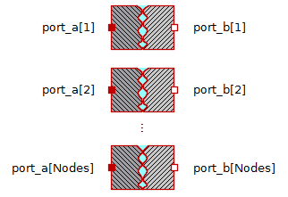 The Multi Thermal Contact Resistance component models multiple Thermal Contact Resistances. The total number of Thermal Contact Resistance components is determined by the Nodes parameter.