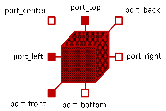 Each Thermal Conductor component is connected to the port_left, port_right, port_front, port_back, port_top, and port_bottom.