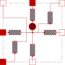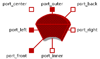 All Thermal Conductors are connected to the Heat Capacitor. The port_center  is directly connected to the Heat Capacitor.