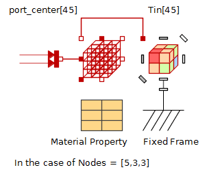 This is the simple example of visualization component model using Cuboid Shape Vis. You must connect heat port Tin[numNode] to port_center[numNode] of each Shape component and match both total numbers of vectorized ports. Then the following visualized geometry is displayed in the 3-D Playback Window.