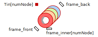 The Ring Shape Vis A component is provided for visualizing temperature change of Ring Shape A. This component has same function as Ring Shape A when its Show Visualization option is true. The key difference between both components is that Ring Shape Vis A can be treated as multibody component. You can connect each frame of this component to the other frame of multibody component or the other Heat Transfer Library visualization component.