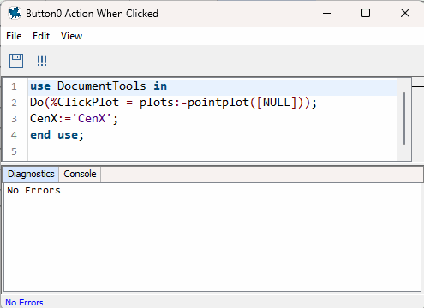 Tip: clickx and clicky store the coordinates of the position where the mouse click occurs. The command Do(%ClickPlot=...) references the plot component ClickPlot its values.