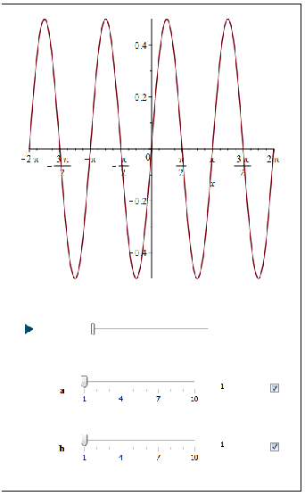 A table is generated inline with a plot area and sliders for a and b.  Click Play to start the animation. Both sliders will be animated. To stop the animation for a particular slider, clear the check box next to it.