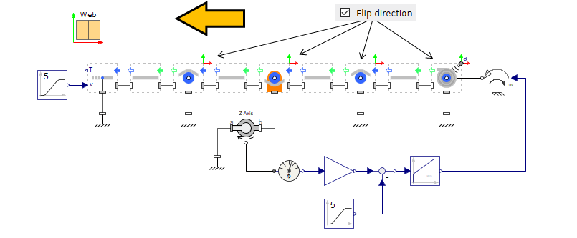 To simplify usage and the connection of 1-D rotational components (motion/torque drivers, electrical motors, etc.) to rollers, the following convention is used: