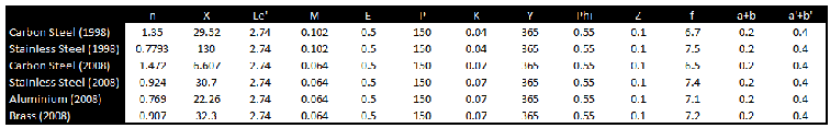 Carbon Steel (1998)Stainless Steel (1998)Carbon Steel (2008)Stainless Steel (2008)Aluminium (2008)Brass (2008)