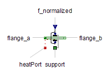 The Translational Brake (or Brake) component models a brake. A frictional force acts between the housing and a flange and a controlled normal force presses the flange to the housing to increase friction.