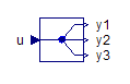 The 3-port Demultiplexer component separates the input signal, u, into three output signals, y1, y2 and y3, in the specified dimensions.