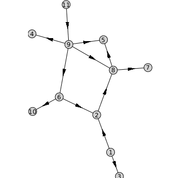 G≔Graph 1: a directed graph with 11 vertices and 12 arcs