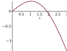 The positive zero of f certainly lies in the interval 1,3, and appears to be slightly less than 2.