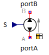 For a signal input connection, speed is directly given to the pump formulation and the flange variables are set to 0 as shown below