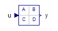 The Continuous State Space (or State Space) block defines the relation between the input u and the output y in state space form: