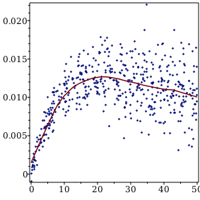 Lowess (locally weighted scatterplot smoothing) is used for plotting a smoothed curve or surface and has been an available option for both ScatterPlot and ScatterPlot3D for several releases. In Maple 2015, the new Lowess command returns the function whose graph is the lowess smoothed curve or surface. Returning a function rather than a plot also means that the Lowess command is capable of handling data points in any finite dimension. The lowess algorithm has also been improved to produce better plots and to achieve lower computation times in routines like ScatterPlot and ScatterPlot3D.