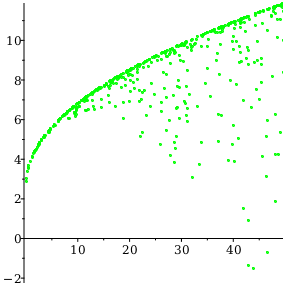 points ≔ dataplotX, Y, style=point, symbolsize=4, color=green: points