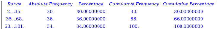 FrequencyTableArrayseqnextprimei,i=1..100,headers, bins=3