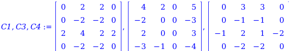 C1,C3,C4≔P−1·B1·P,P−1·B3·P,P−1·B4·P