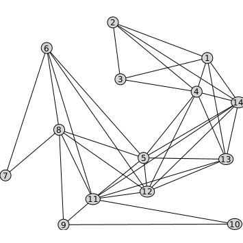 VG≔Graph 1: an undirected graph with 14 vertices and 36 edges