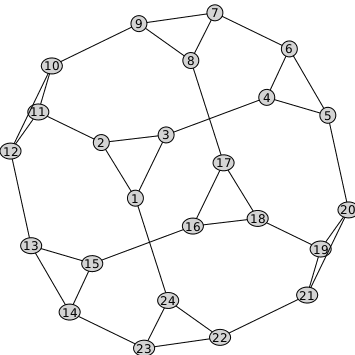 TC≔Graph 1: an undirected graph with 24 vertices and 36 edges
