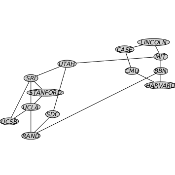 Arpanet≔Graph⁡V,Trail⁡UCSB,UCLA,RAND,SDC,UTAH,SRI,STANFORD,UCLA,SRI,UCSB,BBN,RAND,MIT,UTAH,Trail⁡MIT,LINCOLN,CASE,CMU,HARVARD,BBN,MIT