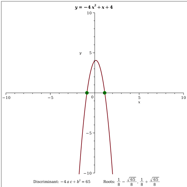 Generate a random quadratic function by clicking on the button. Observe that the discriminant of the right hand side corresponds with the number of roots.