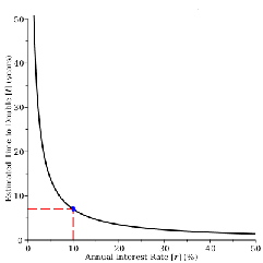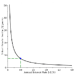 Use the slider below to change the current interest rate and see how this affects the doubling time. Notice how the difference between the actual number of years and the estimated number of years grows larger as the interest rate increases.