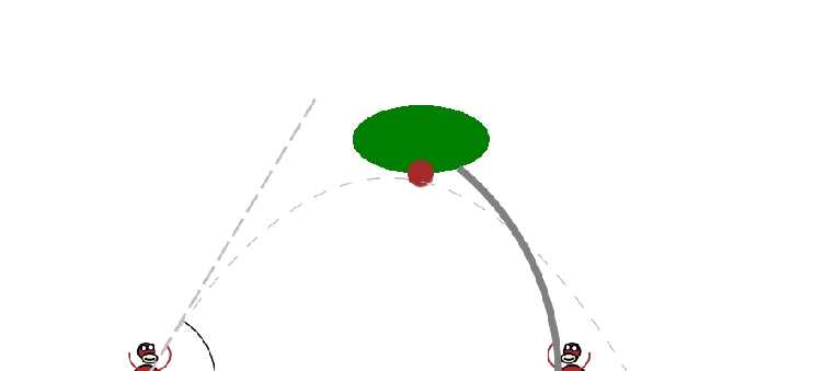Adjust the monkey's initial speed and jump angle so that she catches the coconut.