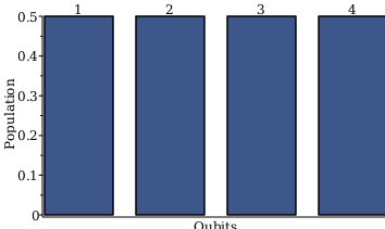 The probability of being "up" in each qubit is 1/2 as we can see from the QubitPopulationsPlot command