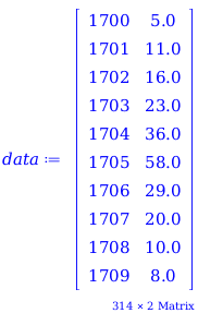 datafileFileTools:-JoinPathkerneloptsdatadir,datasets,sunspots.csv