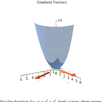 * output = plot specifies that a plot displays, which shows the function, a level curve at the point, the projection of that level curve onto the x-y plane, and a scaled vector in the direction of the gradient.