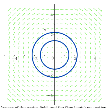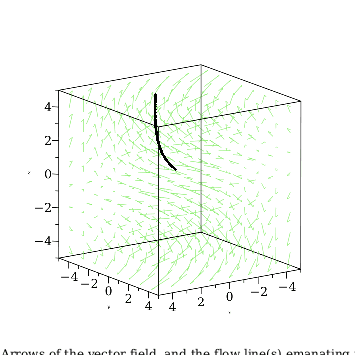 If output = plot, the default caption is Arrows of the vector field, and the flow line(s) emanating from the given initial point(s).